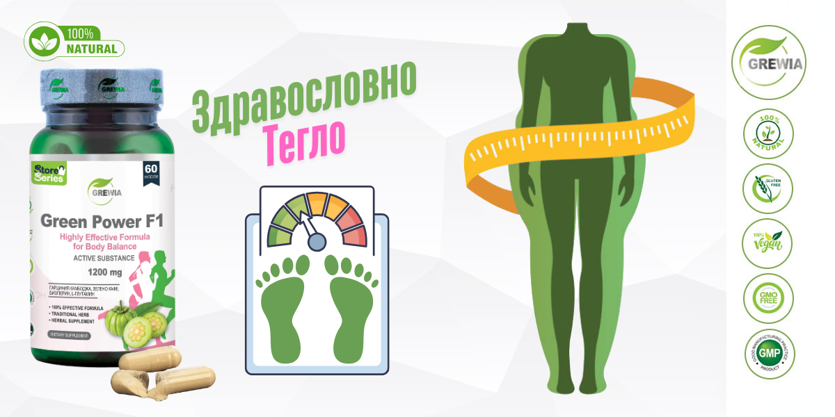 Green Power F1 – Highly Effective Formula for Body Balance – Active Substance – GMP Certified Product – 1200mg. Daily Dose | Отслабване | Изгаряне на мазнини